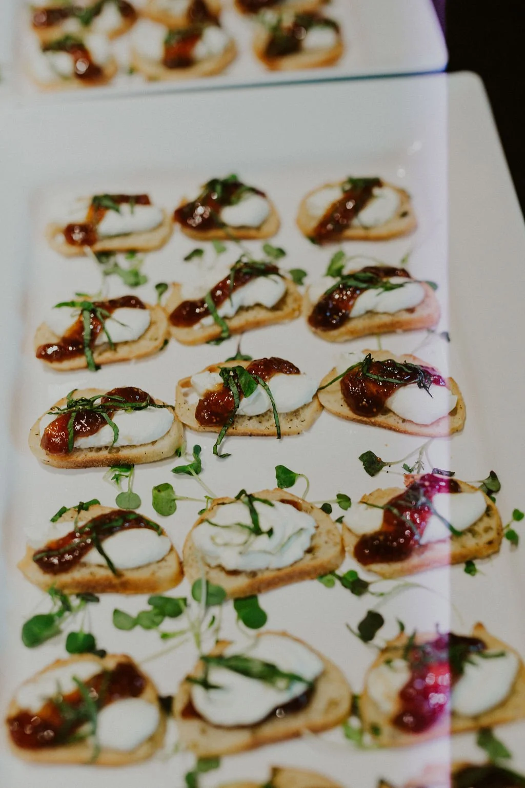 Guests were welcomed with an array of tray passed appetizers, including our Whipped Goat Cheese with Fig Jam on a Crostini and Miniature Smokey Black Bean Tacos topped with Orange Olive Salsa and Chimichurri Crema.