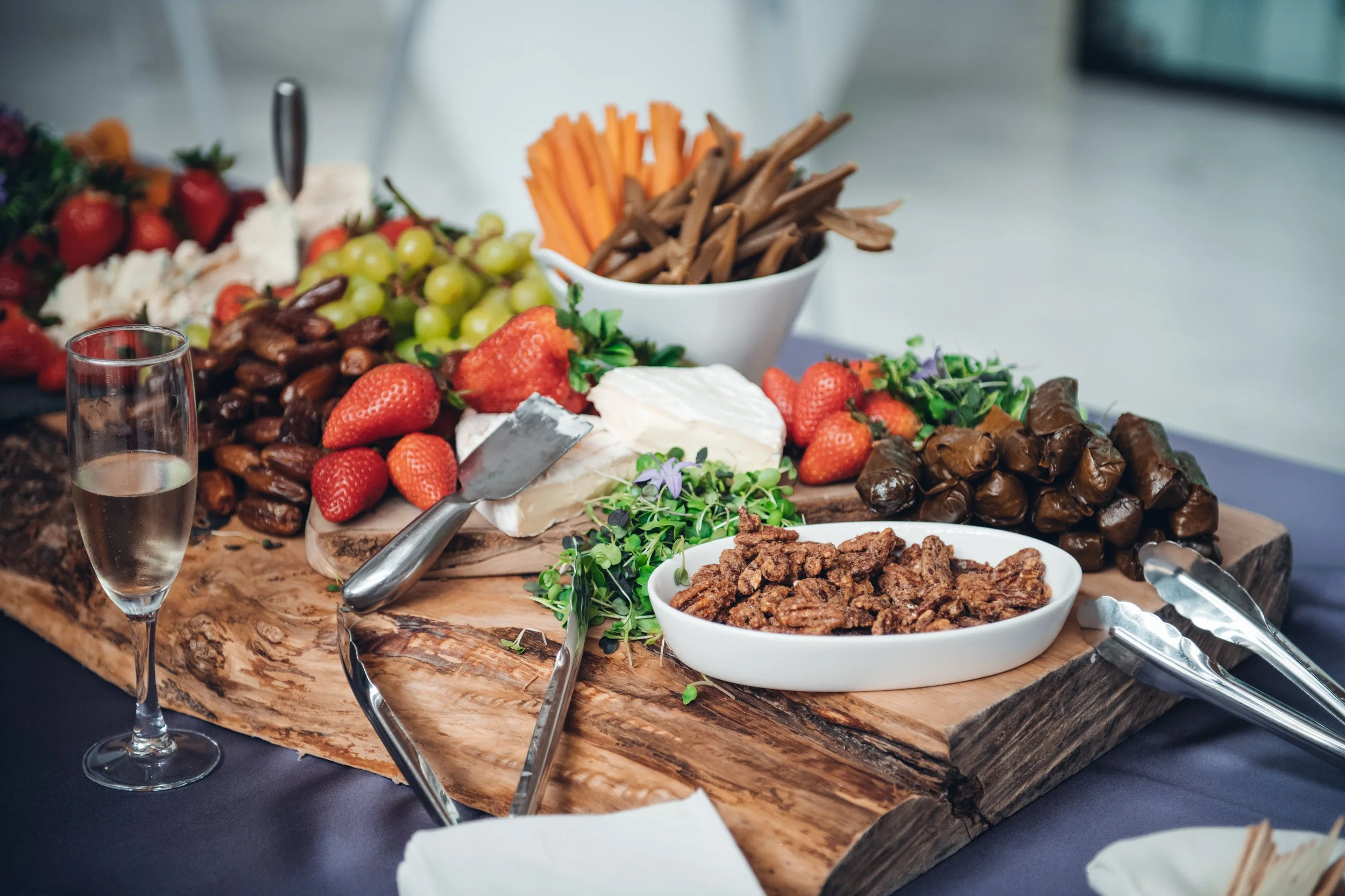 Assorted Cheeses, Cured Meats, Fresh & Dried Fruit, Vanilla-Chipotle Spiced Pecans, Herb Roasted Olives