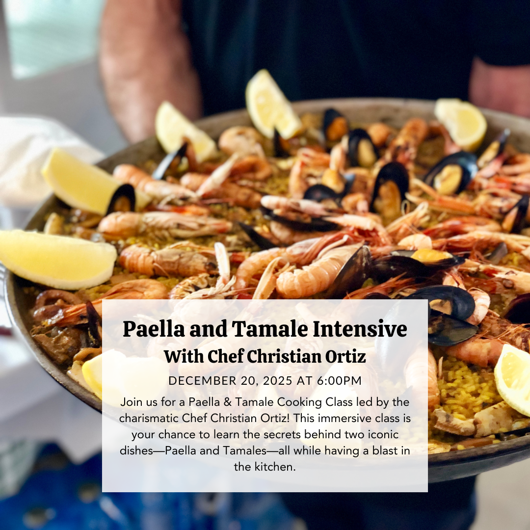 Ready for a culinary experience that’s as fun and vibrant as the dishes you’ll create? Join us for a Paella & Tamale Cooking Class led by the charismatic Chef Christian Ortiz! This immersive class is your chance to learn the secrets behind two iconic dishes—Paella and Tamales—all while having a blast in the kitchen.
